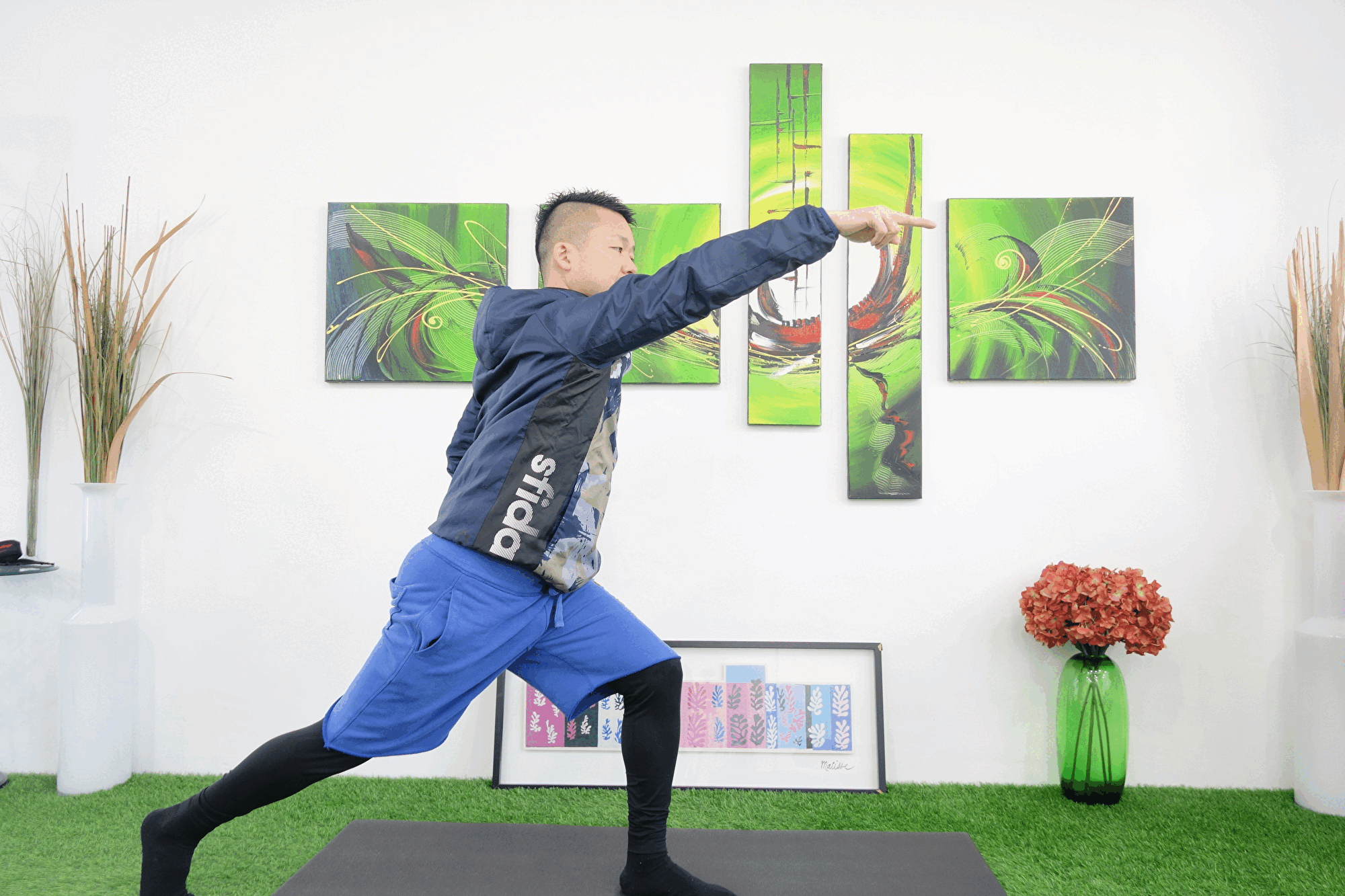 2、手のひらを天井に向け、腕をみぞおち前に伸ばす