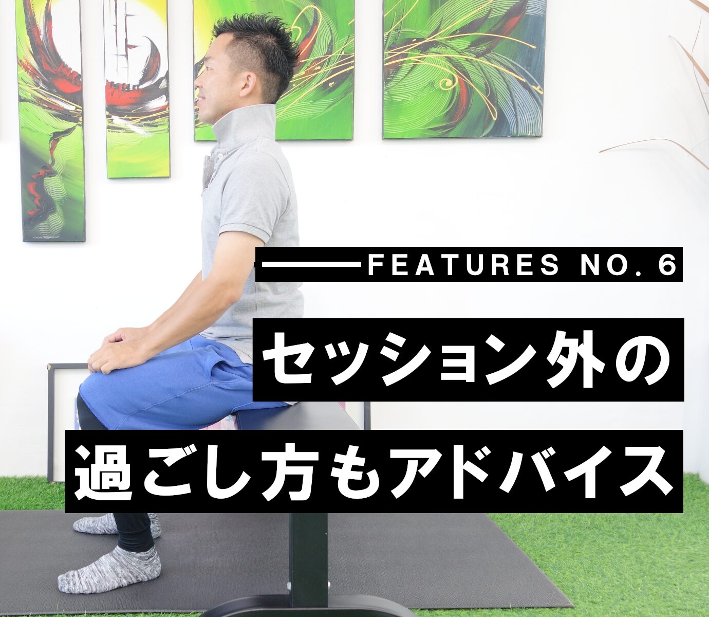 カラダやココロの悩みを改善するには、セッション外の時間の過ごし方が重要になります。自宅や会社などで簡単にできるトレーニングやケア、姿勢改善の方法などもセッション内でお伝えします。