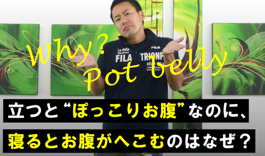 1、へそを突き出して背筋に力を入れる