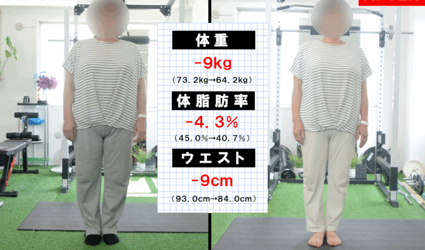 66歳でも2ヶ月半で約7kg!腰痛や膝痛も軽減して嬉しい!【パーソナルコース】
