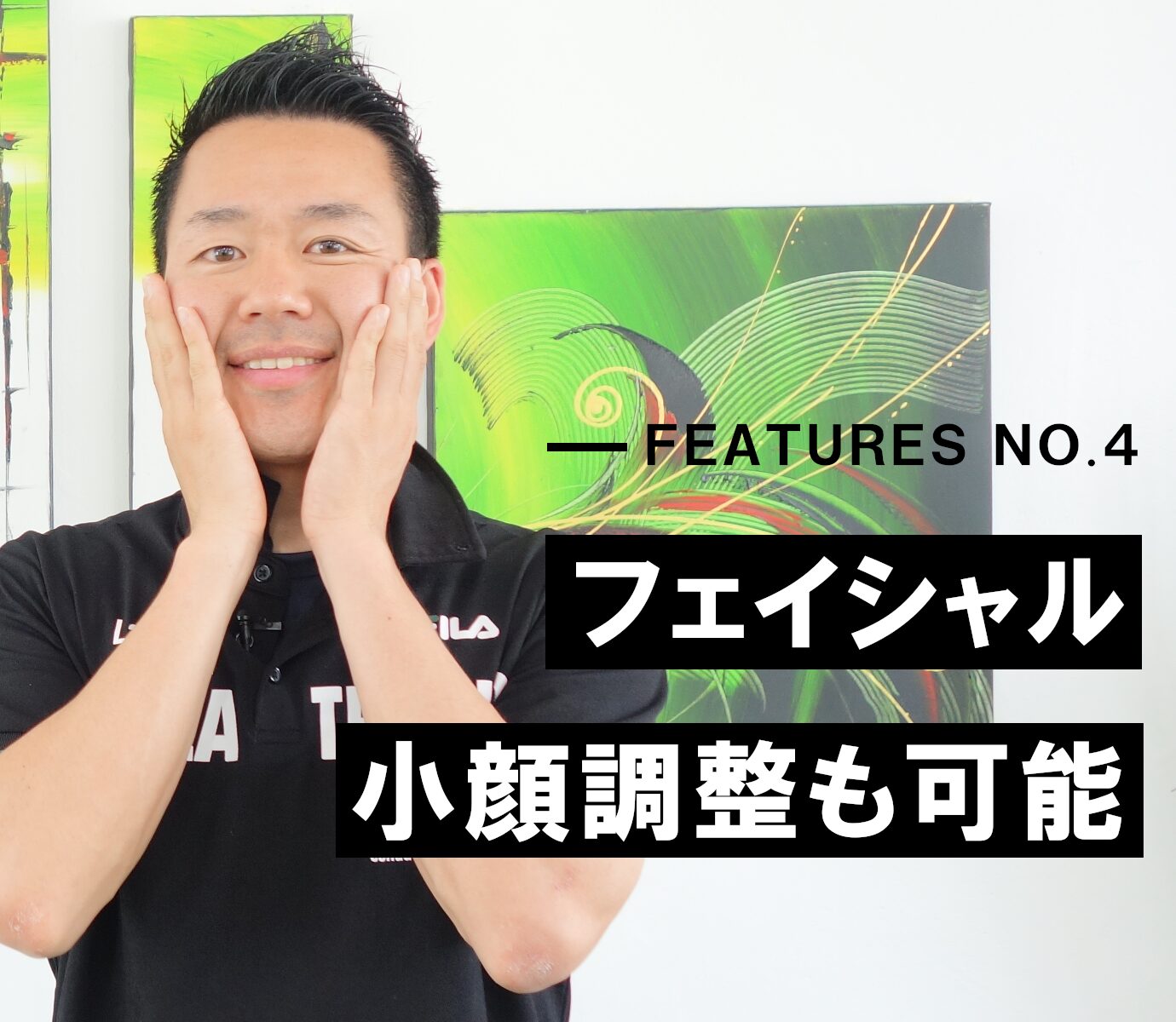 顔の大きさも改善可能。顎関節が歪むと、顔が大きく見える。この歪みを整え、顔のむくみを改善する。そうすると、短期間で小顔に。IZURUでは、セッション内でフェイシャルや小顔調整も可能。