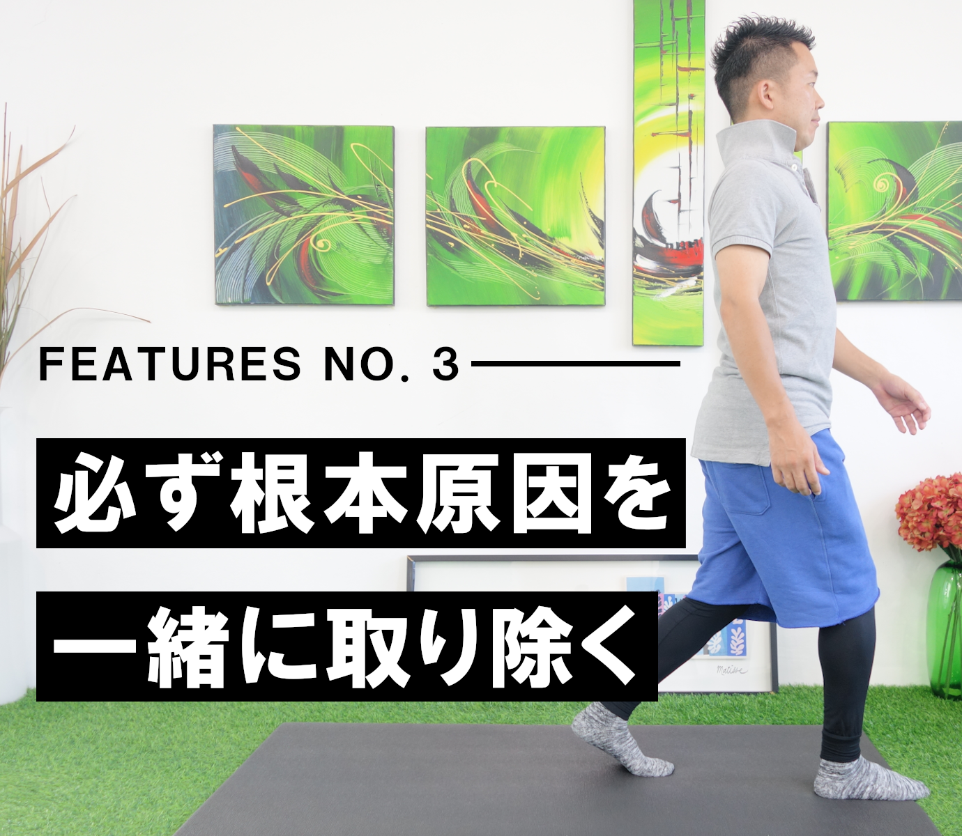 ただ全身を緩めるだけでは、根本的な改善は難しい。大切なことは、根本原因を取り除くこと。痛みや姿勢の崩れの場合、普段の座り方や立ち方が大きく影響する。だからこそ、自然な姿勢や歩き方が習得できるように細かくご指導を行う。