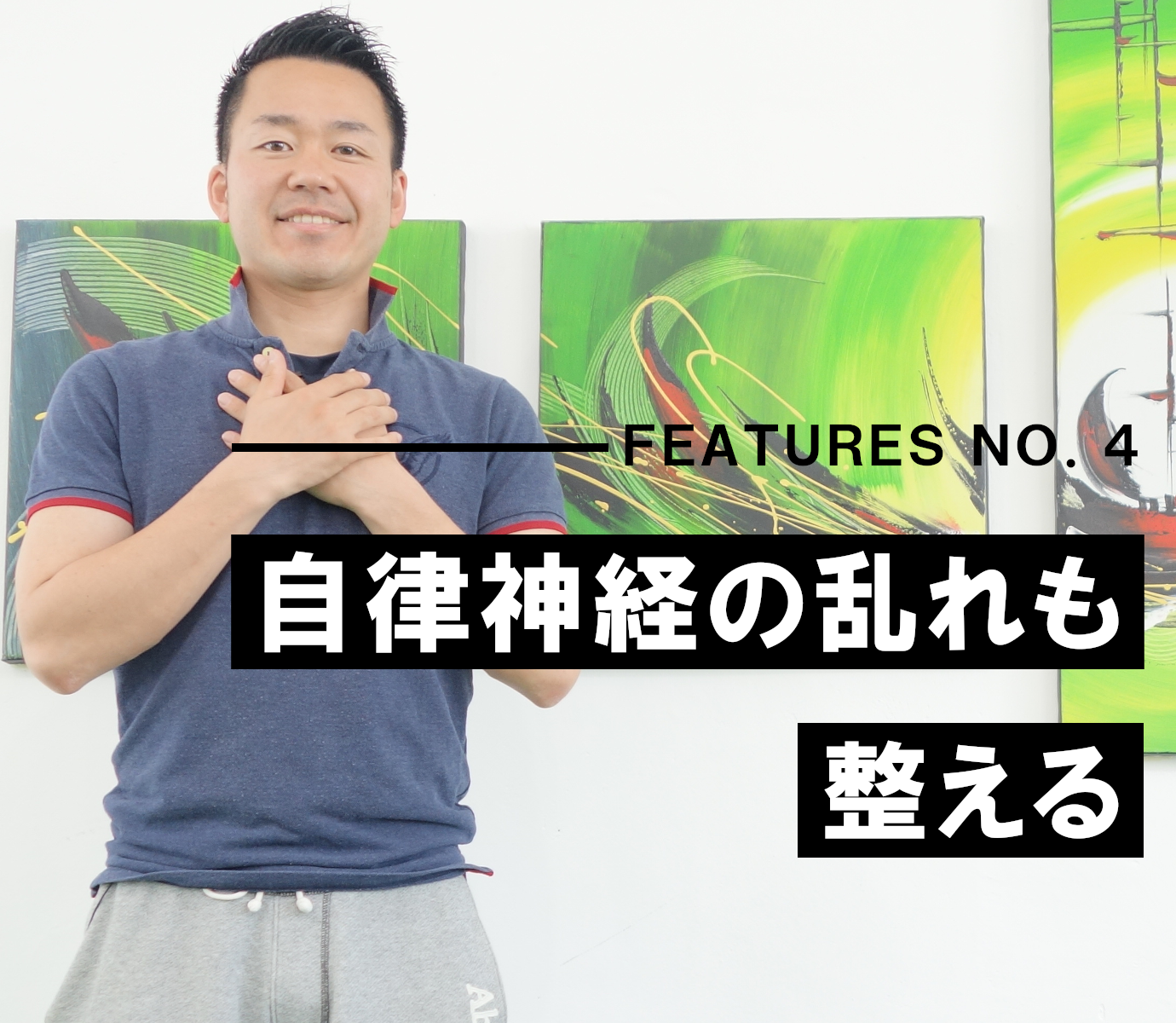 痛みと自律神経のバランスの乱れは、大きく関係する。痛みは脳が感知しているため、自律神経のバランスが乱れると痛みを感じやすくなる。だからこそ、自律神経を整えるアプローチもセッションで行う。