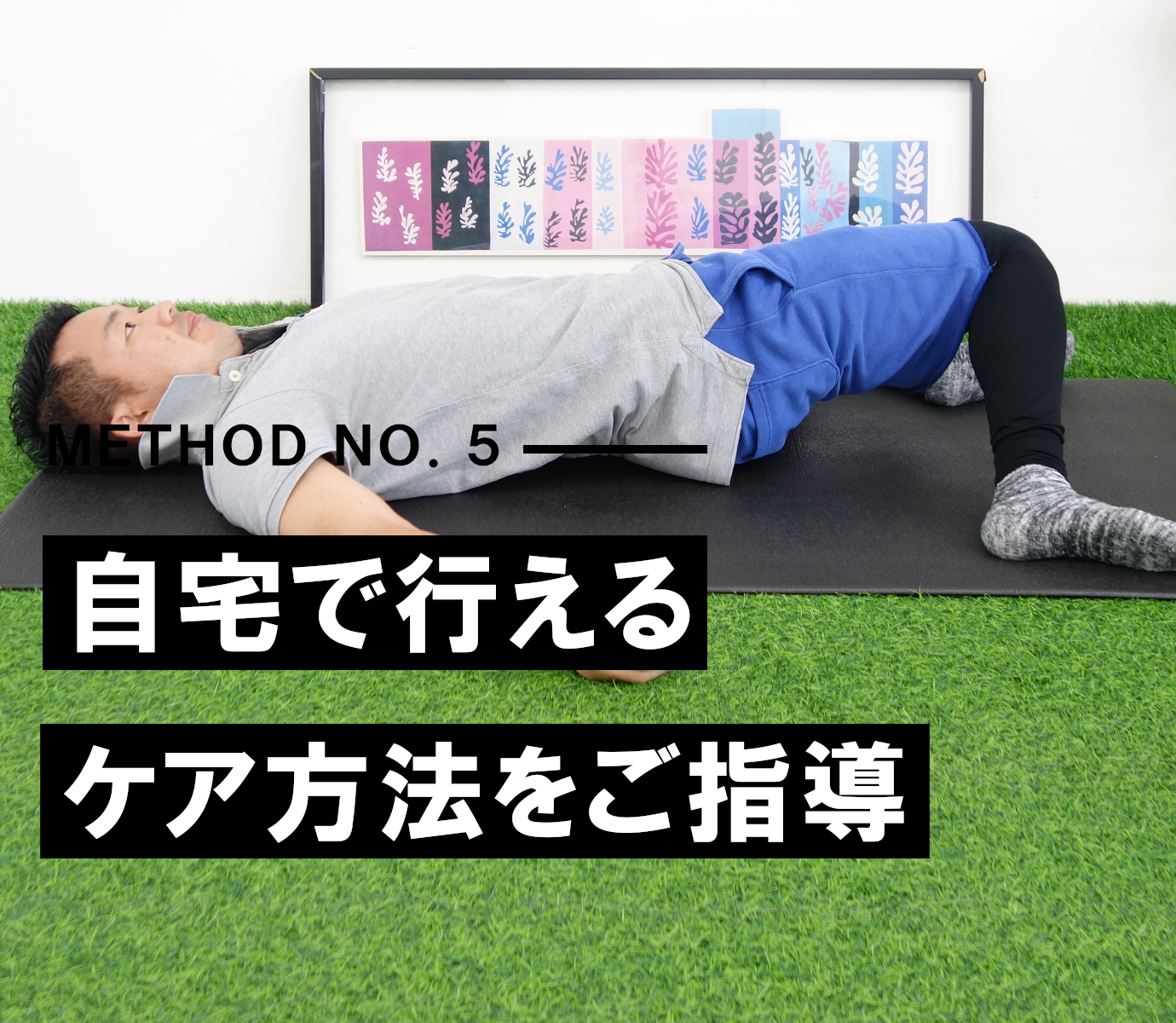 セッション中・後などに、自宅でも行ってほしいケア方法をお伝えします。特に週1回以下の頻度でセッションに来られる方の場合、自宅でゆるめることは必須。1人でもできるわかりやすい方法をご指導します。