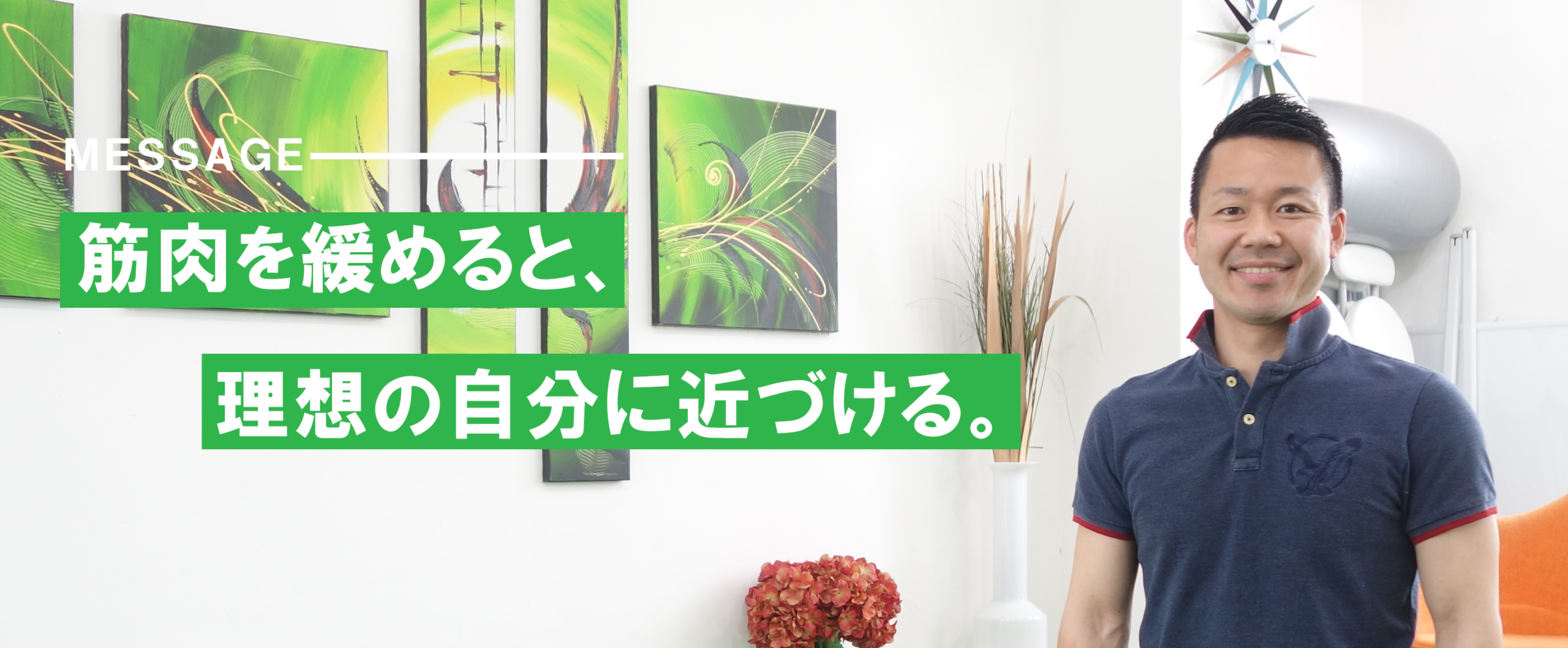 筋肉を緩めて、カラダとココロの悩みを改善する。このメッセージをセッションやブログなどを通じて、みなさんにお届けできればと思っています。スタジオでお待ちしているので、ぜひ一緒に変わりましょう!