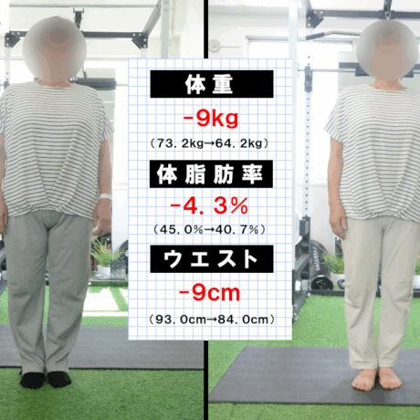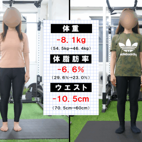 | 体重 | 54.5kg | 46.4kg (-8.1kg) |