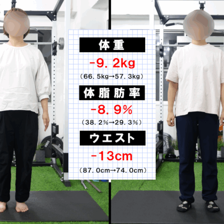 | 体脂肪率 | 29.6% | 23.0% (-6.6%) |