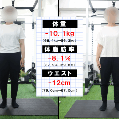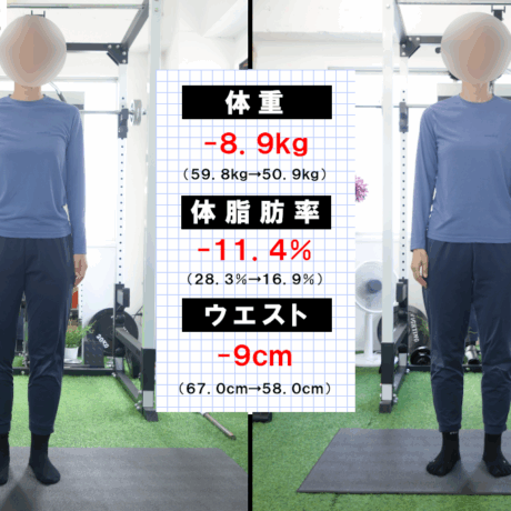など。こういった点を適切に守っていただいたおかげで、8ヶ月で-8.1kgのダイエットに成功されました。